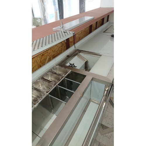 Станция Бармена с мойкой ,доской, мусорником, ринзером и полкой для бутылок 1500х700х850