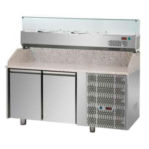 Стол для пиццы 2-х дверный с гранитной столешней и витриной с прямым стеклом DGD PZ02MID80+VR4 160 VD используется в кафе, барах, ресторанах для приготовления пиццы
