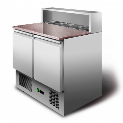 Стол для пиццы с гранитной столешницей и салат-баром Gastrorag PS900 SEC - используется в кафе, барах, ресторанах для приготовления пиццы.