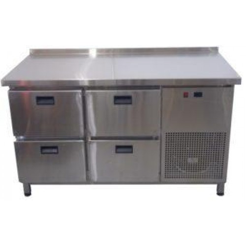 Стол холодильный 4ре выдвижных ящика 1400х700х850. Температурный режим +2 +8 С, Объем камеры — 260л, Напряжение — 220В, Мах потребляемая электрическая мощность — 0,55 Вт.